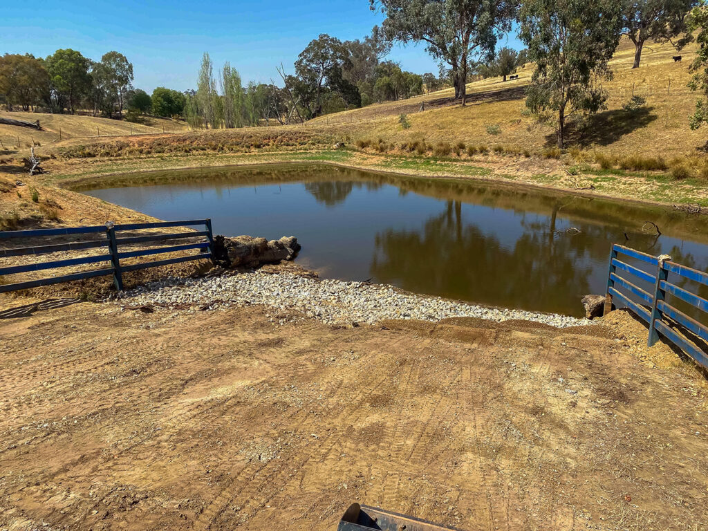 ECS also assisted with dam rehabilitation works where ECS fabricated heavy-duty fencing to guide stock access and rock beaching to minimise the plugging of the dam bank.