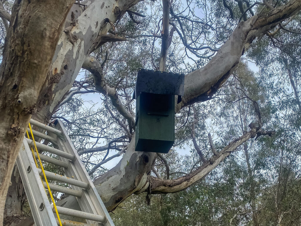ECS also assisted this client by supplying and installing nest boxes for gliders and birds into the established treed zones along the creek line.